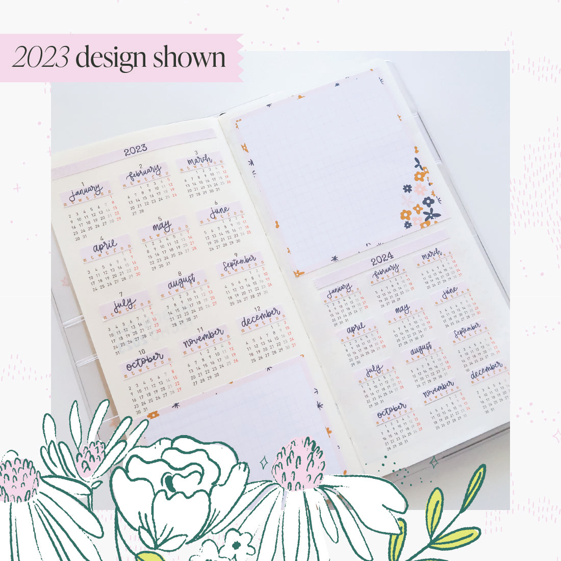 2024 H. Weeks Yearly Calendar Sticker Kit Imagine Bouquet